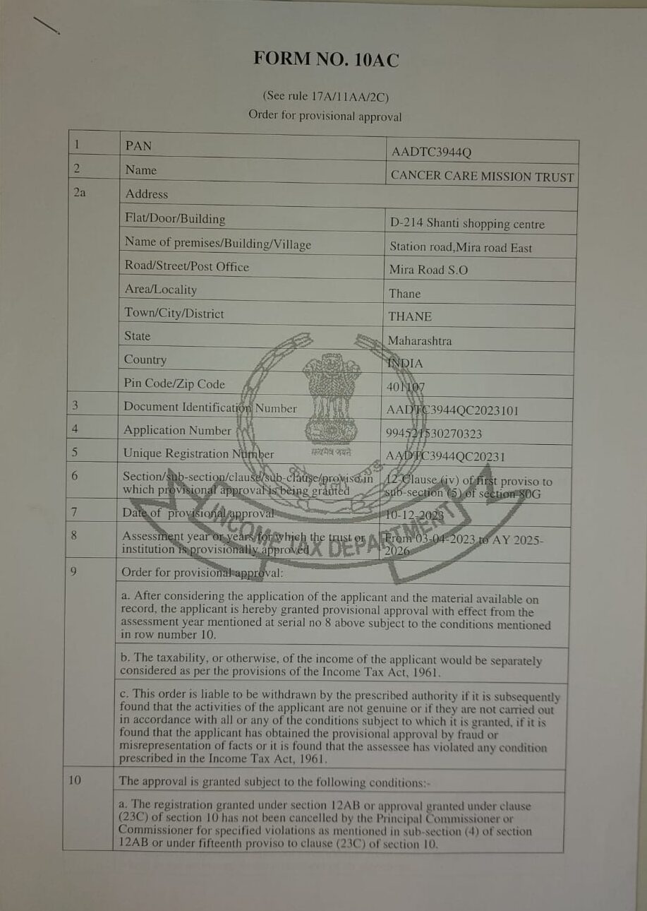 At Cancer Care Mission Trust, we stand out from other organizations in our unwavering commitment and unique approach towards combating cancer.
