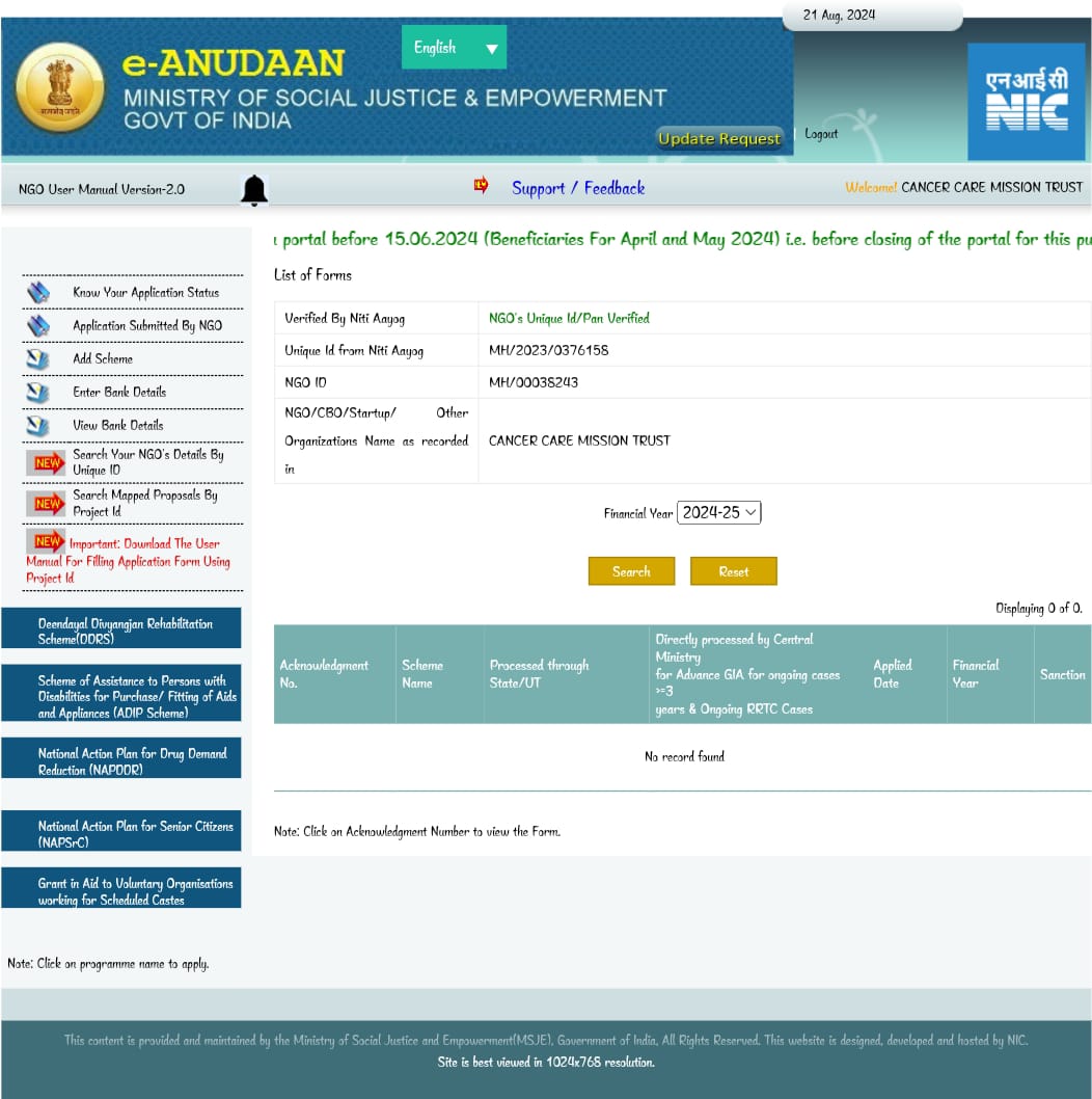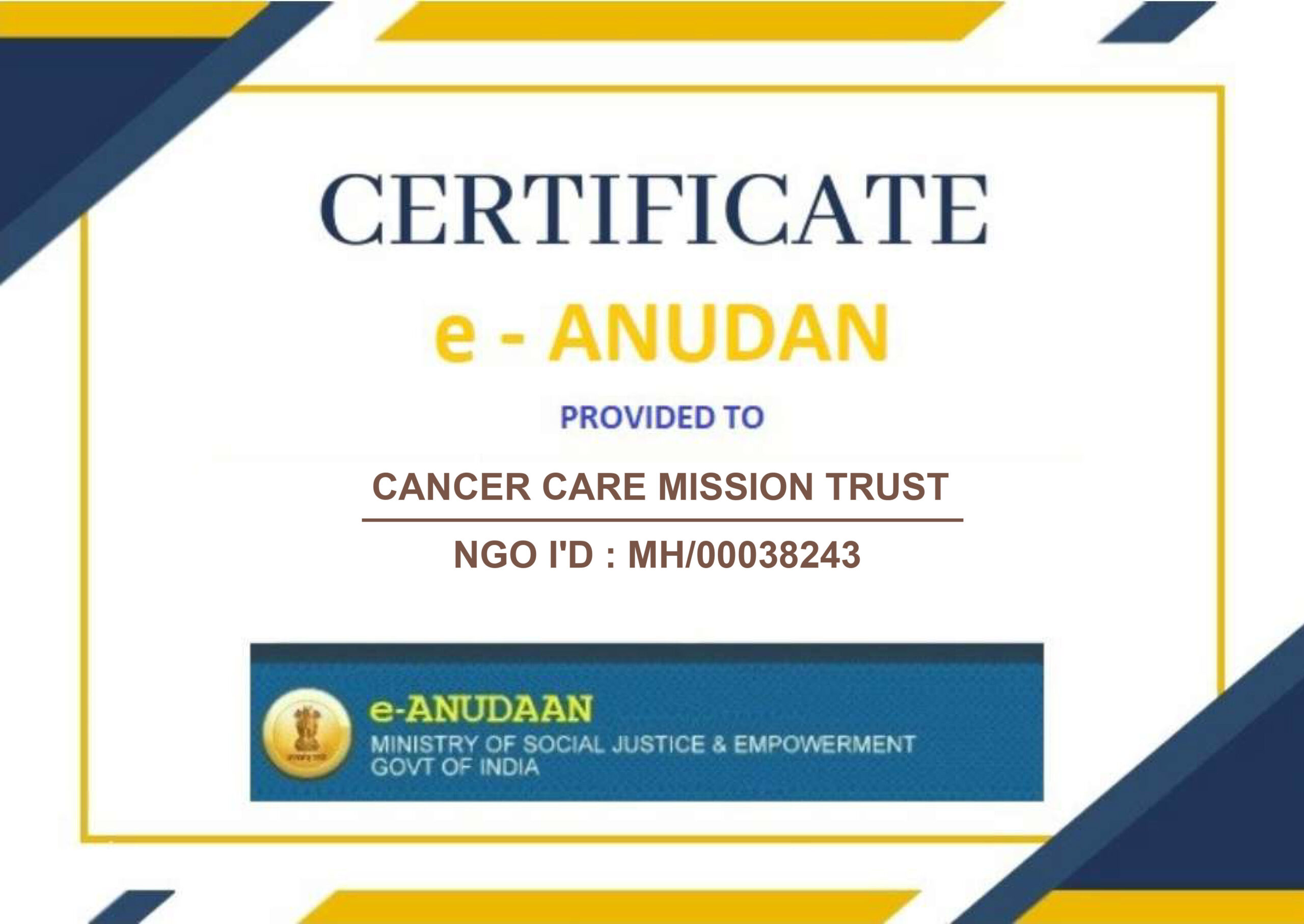 E-ANUDAN CERTIFICATE